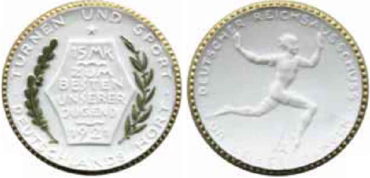 Rant i liście złocone, Rs.: biegacz, Aw.: w sześciokącie pięcioramienna gwiazda