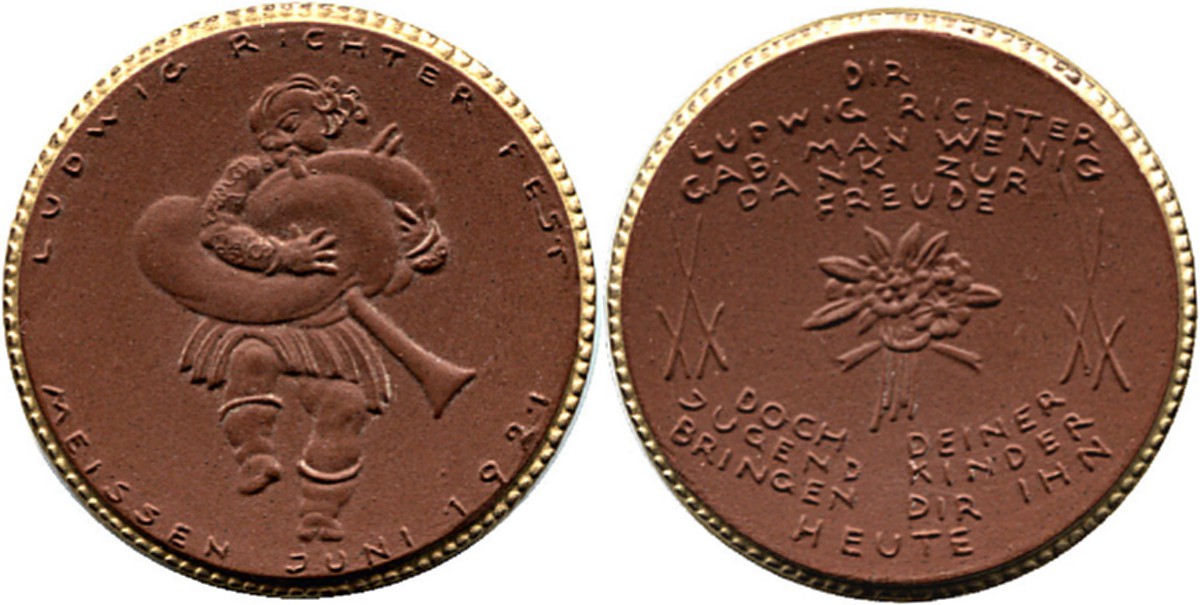 36.2 10 Mark 1921 ∅42,0 braunes Böttger Steinzeug, Rand vergoldet
