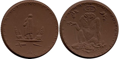 1. ohne Wertangabe o.J.(1921) ∅ 42,0 braunes Böttger - Steinzeug, Gipsform