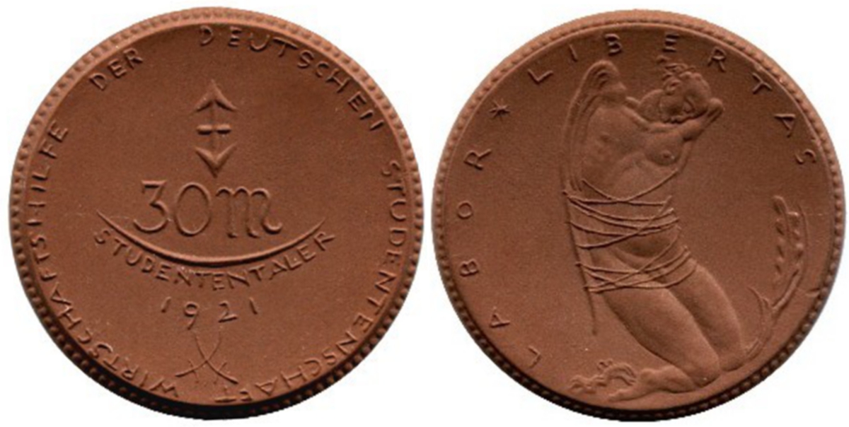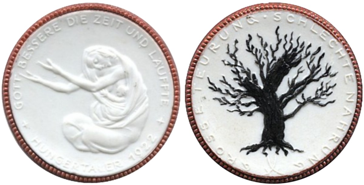 31. Hungertaler 1922 ∅ 50,0 porcelana brązowa, z formy gipsowej