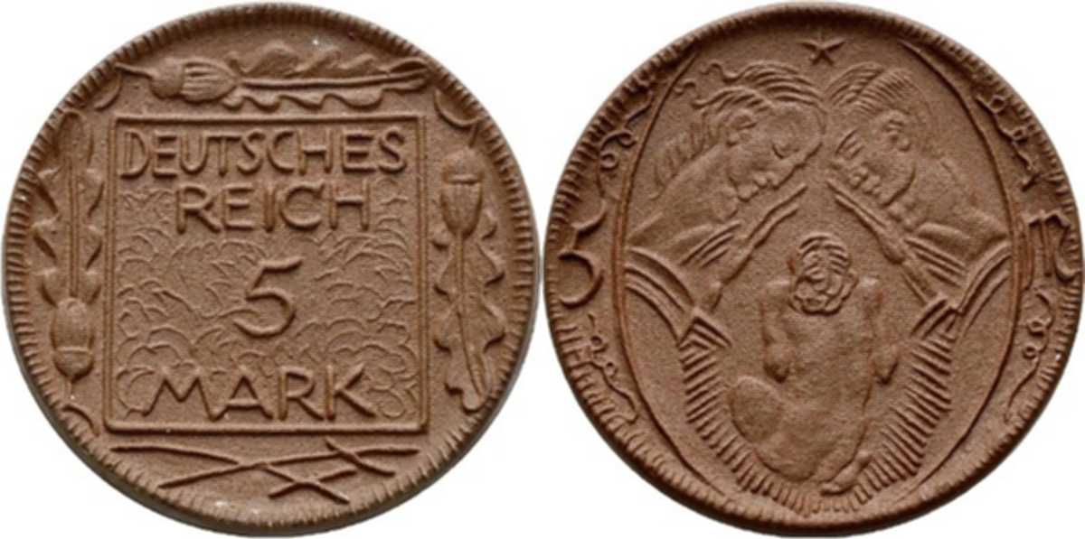 1.1 10 fenigów o.J.(1920) ∅ 21,5-22,0, 1,60-2,25g, porcelana brązowa, z formy gipsowej