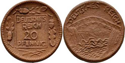 2.1 20 fenigów 1920 ∅ 22,0-23,5, 1,62-2,67g, porcelana brązowa,z formy gipsowej