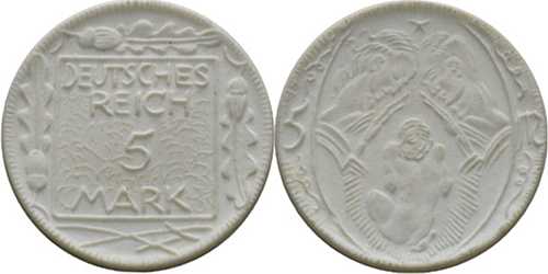 5.3 1 marka 1920 ∅ 24,5, waga 2,16g, porcelana biała, z formy gipsowej nakład?