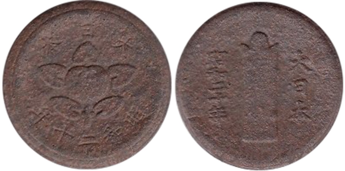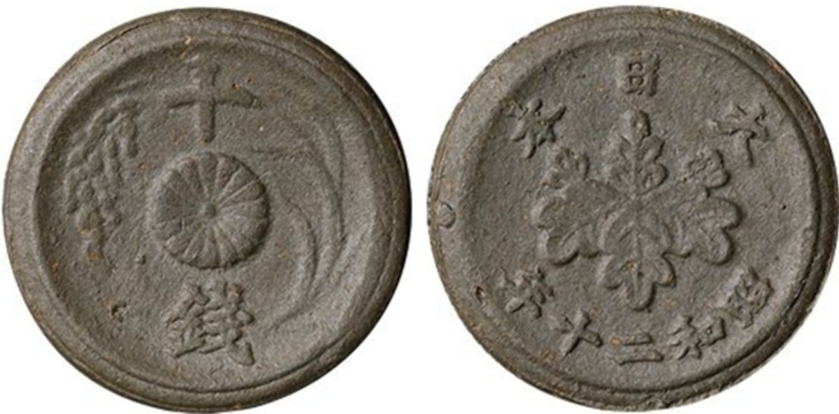 日本 未発行十銭陶貨 10Sen Porcelain 昭和20年(1945) 褐色陶貨 橘