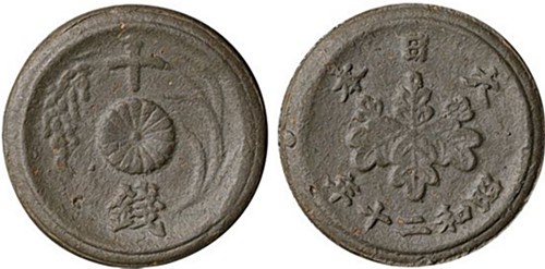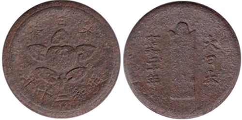 Na rewersie kwiat wiśni i napis Dai Nippon oraz rok emisji