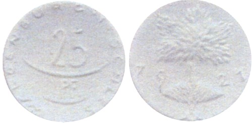 1.2 25 Pfennig 1921 ∅ 22,0 weißes Porzellan, Gipsform