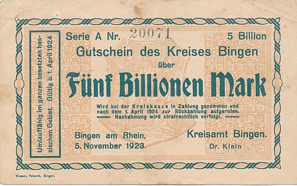 Foto: Schmuckstube Oberhausen/maShops/2025/60EUR - Bingen 5 Bilionów Marek 1923