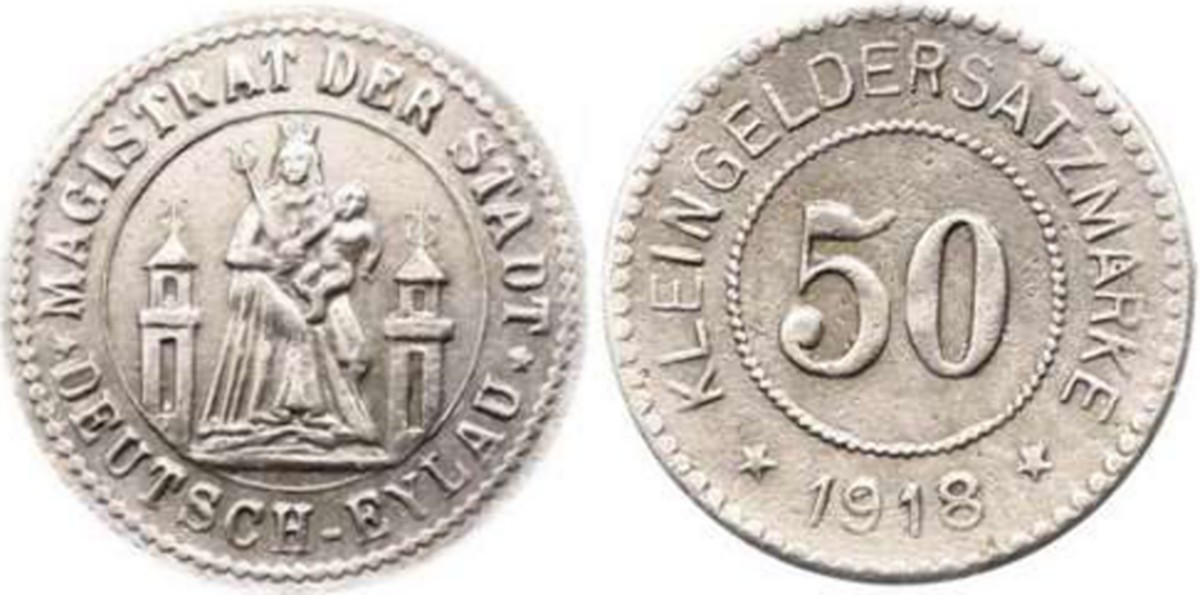 6. 50 fenigów 1916/1917 ∅ 24,4 8-kąt , waga 3,1g cynk