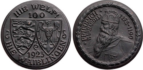 Foto: Fryderyk Barbarossa na monecie 100Mk z Waiblingen