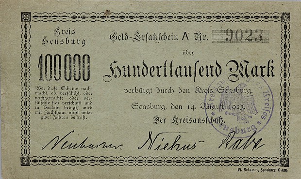 Foto: Numimarket eAukcja6/2025/1260zł - Mrągowo 100.000 Marek 14.08.1923