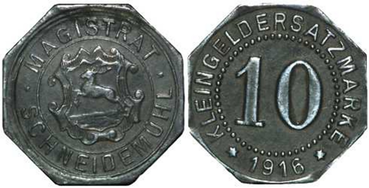 7.2 10 fenigów 1916 8-kąt, wys.20,8mm, cynk niklowany, waga 1,8g
