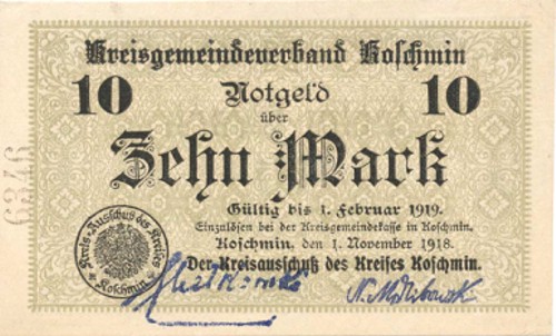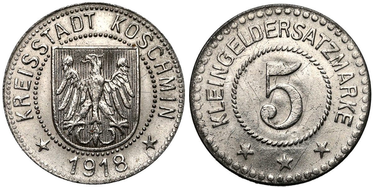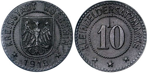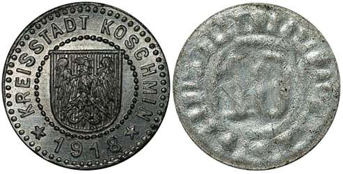 Wg Uchwały Rady Miasta Koźmina z 7 maja 1918 podjęta została decyzja o zamówieniu zastępczego drobnego pieniądza w firmie Christmann z Lipska w ilościach: