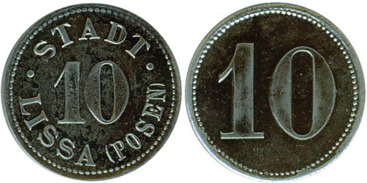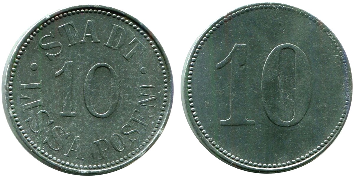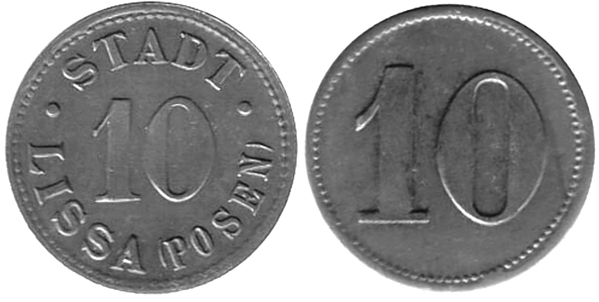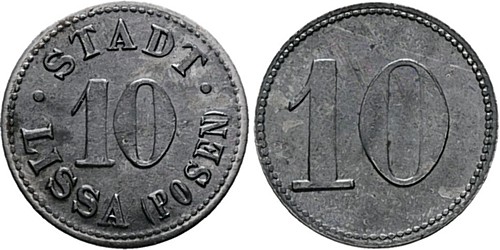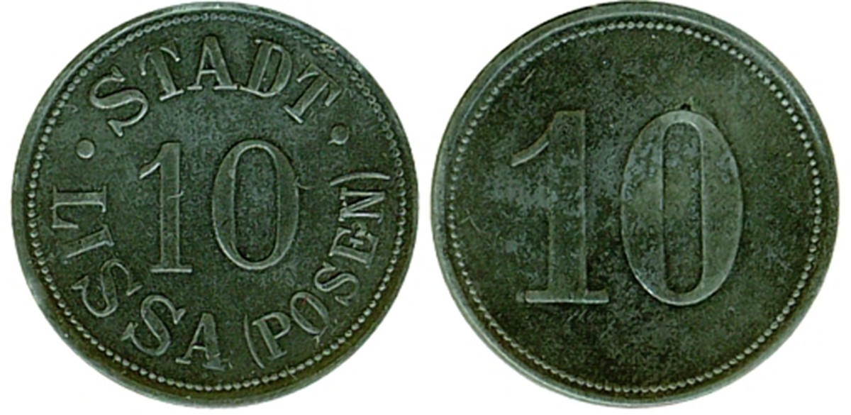 6. hybryda -awers jak w nr 3.2 - 10 fenigów bez daty ∅ 23,5, cynk wg Funcka, żelazo wg Menzla i Sikorskiego (prodcent Robert Tummler, Berlin)