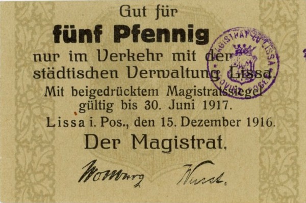 Foto: Art Magnat70/2025/168zł - Leszno 5 fenigów 1916, Podczaski T. III – P-090.1