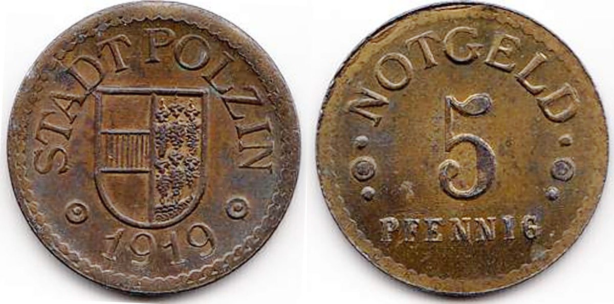 1.4 - 5 fenigów 1919 ∅ 18,1 żelazo mosiądzowane, waga 2,0g