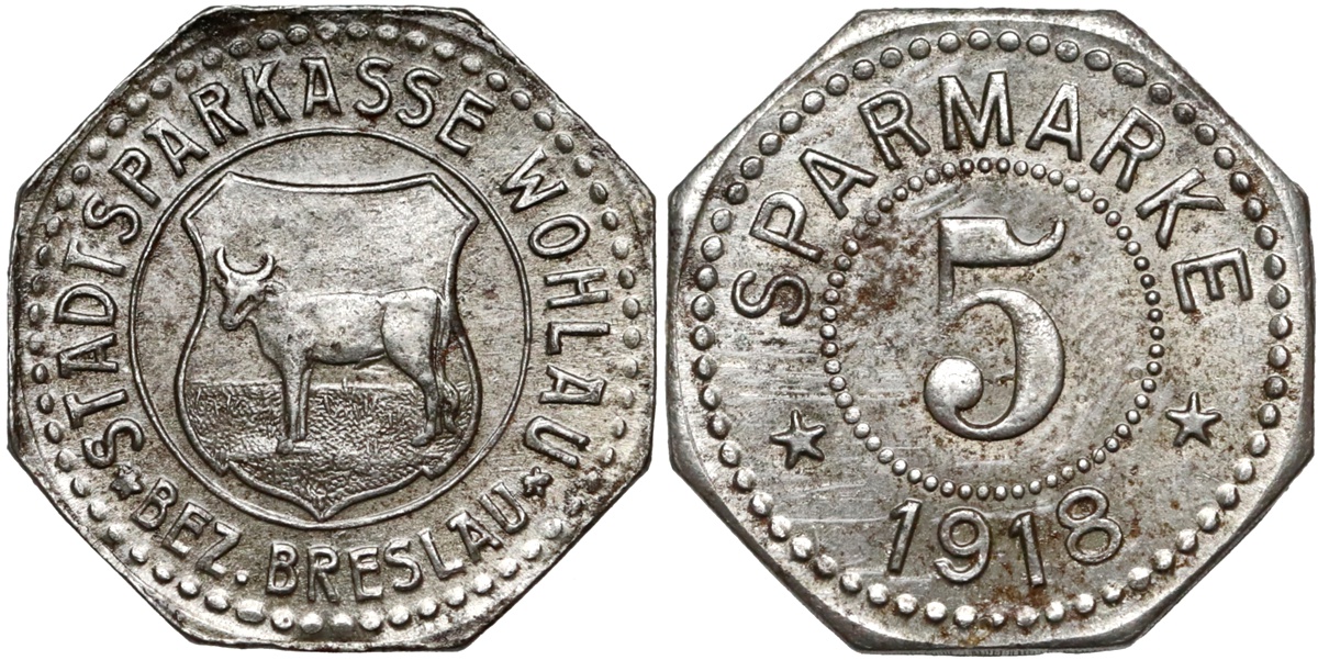 1.2 5 fenigów 1918 wysok. 19,5mm, 8- kąt, żelazo, z otworem