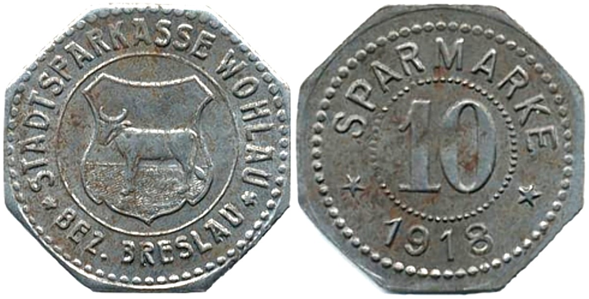 2.1 10 fenigów 1918 wysok.20,75 - 20,85mm, 8- kąt, żelazo, waga 2,65g