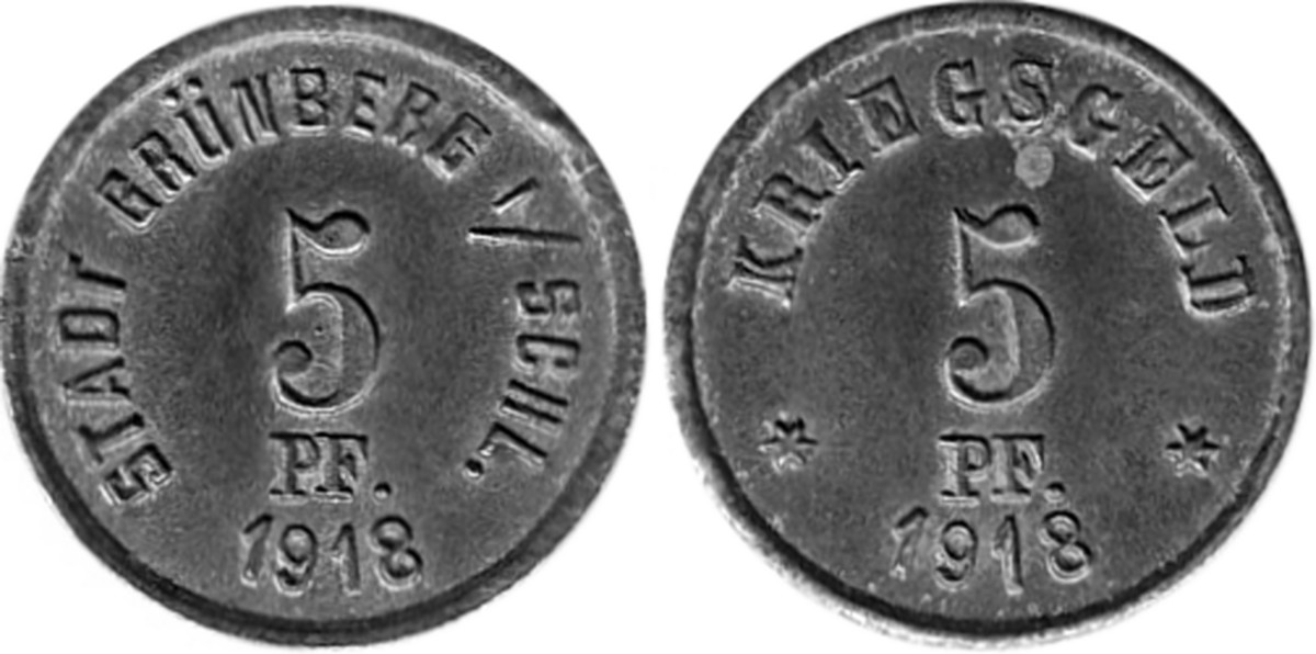 1b 5 fenigów 1918 ∅ 18,7, żelazo, moneta bita uszkodzonym stemplem na 5 na awersie