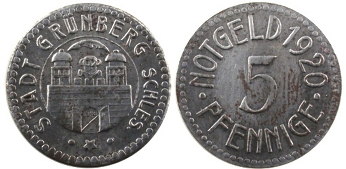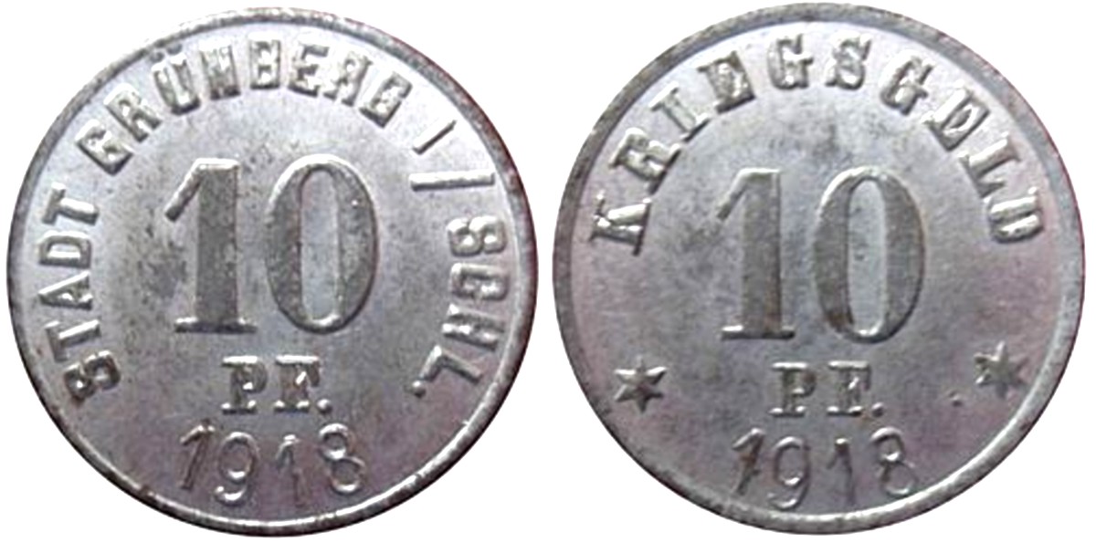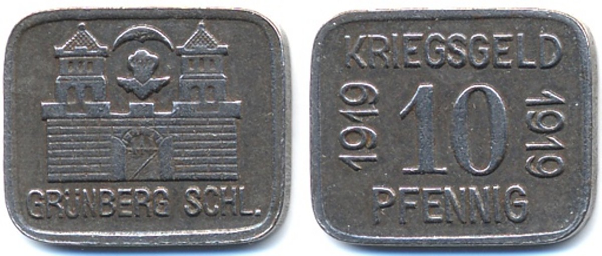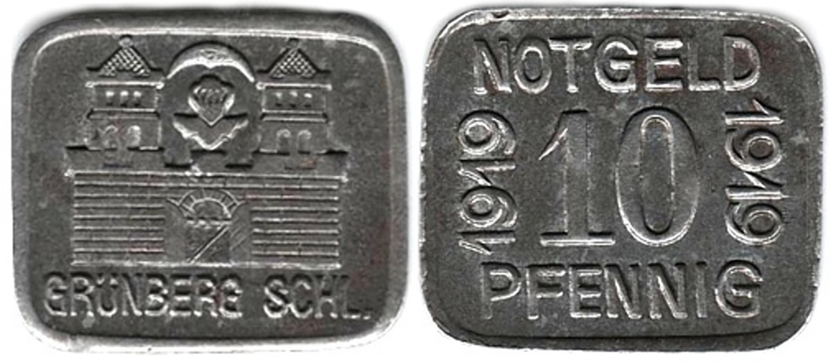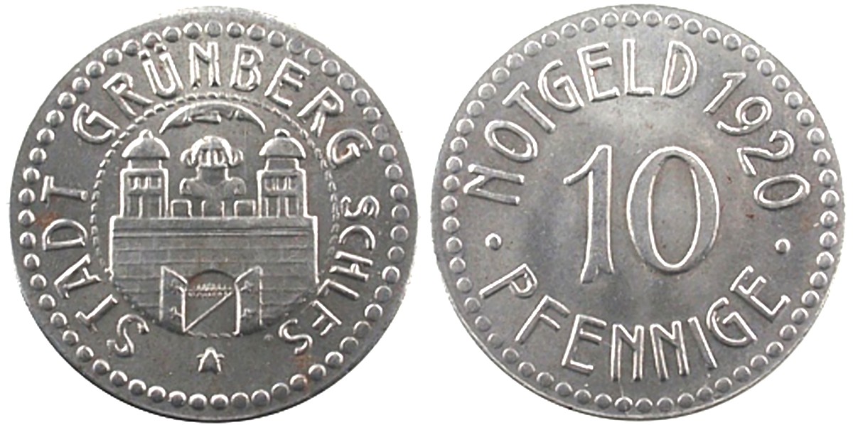 Stempel rewersu monety Zielona Góra 10Pf 1919 20,0 x 17,0mm, wymiar stempla 27,5 X 27,5 mm