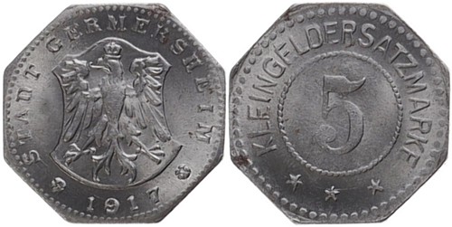 157.4 5 fenigów 1917 ∅ 17,8 żelazo, (8-kąt)