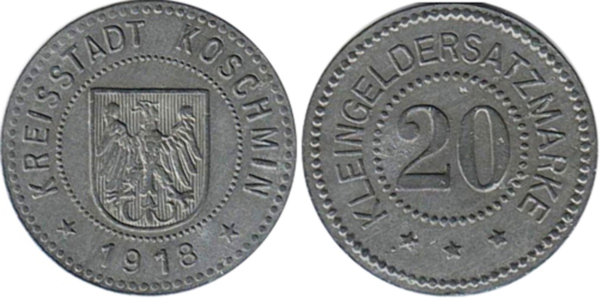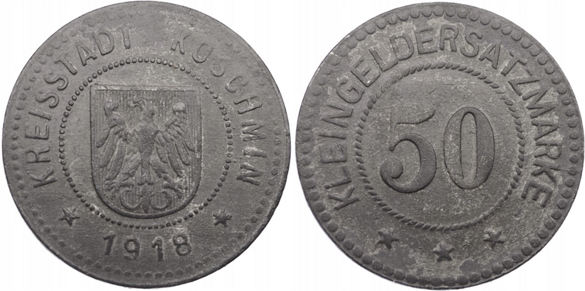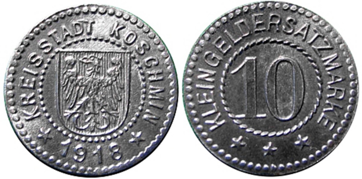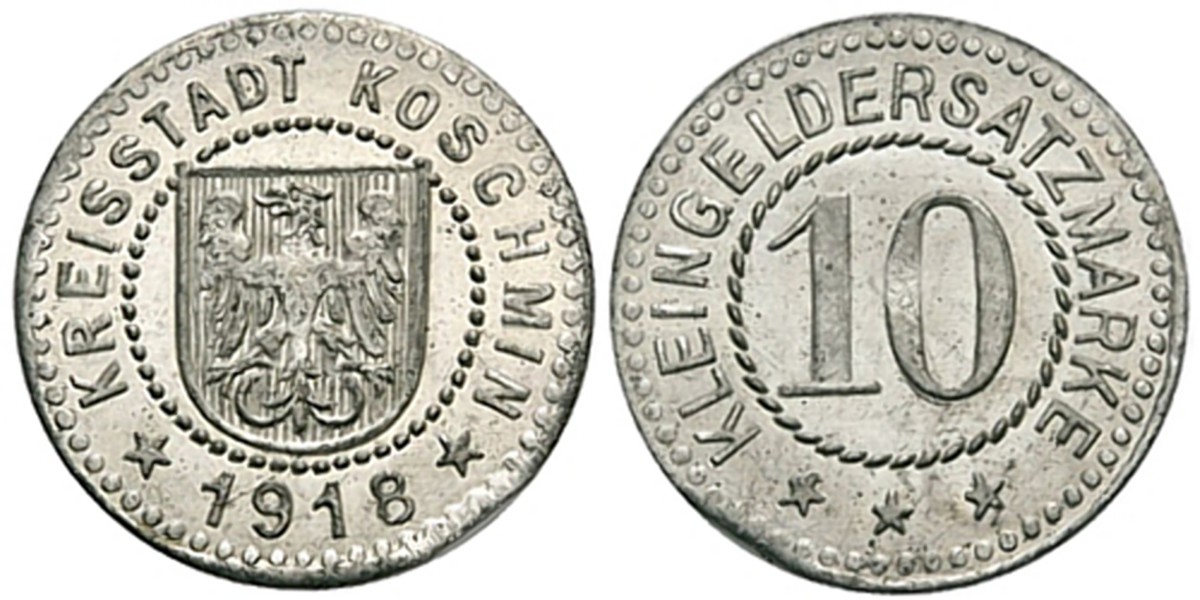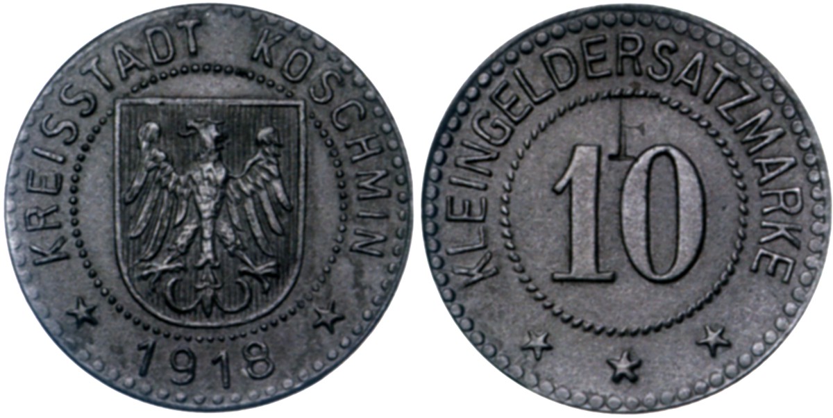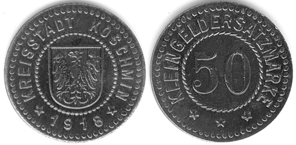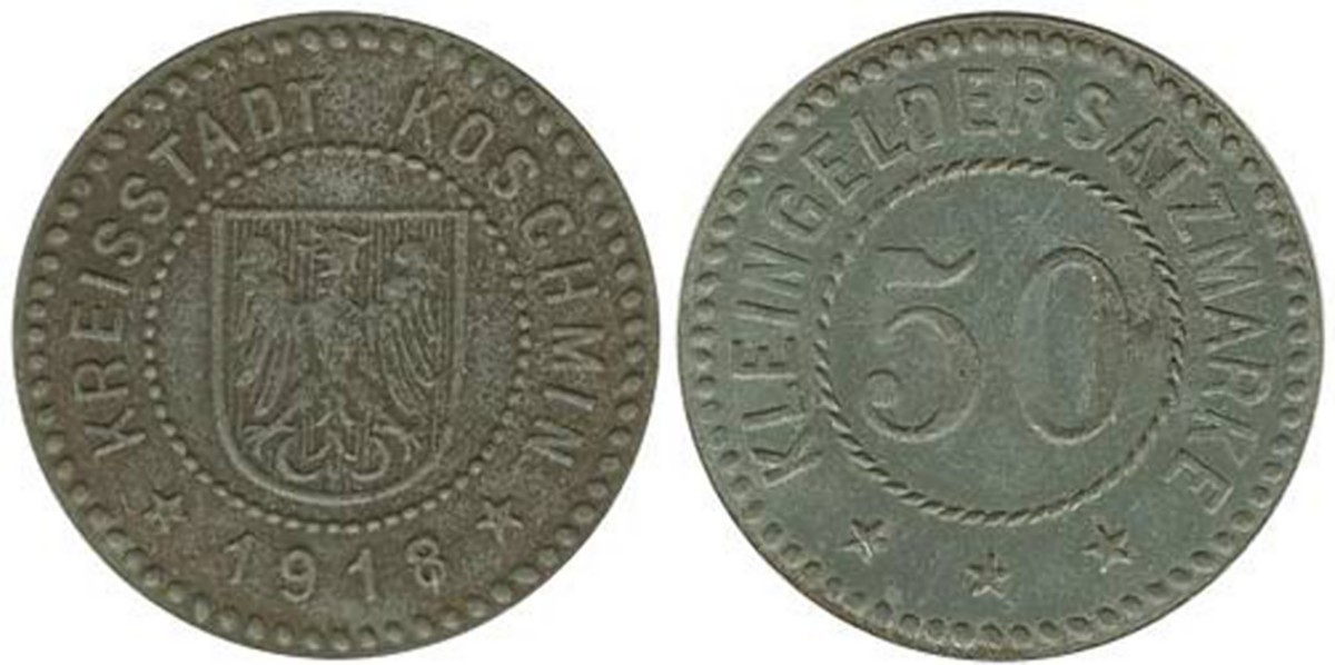 Wg Uchwały Rady Miasta Koźmina z 7 maja 1918 podjęta została decyzja o zamówieniu zastępczego drobnego pieniądza w firmie Christmann z Lipska w ilościach:
